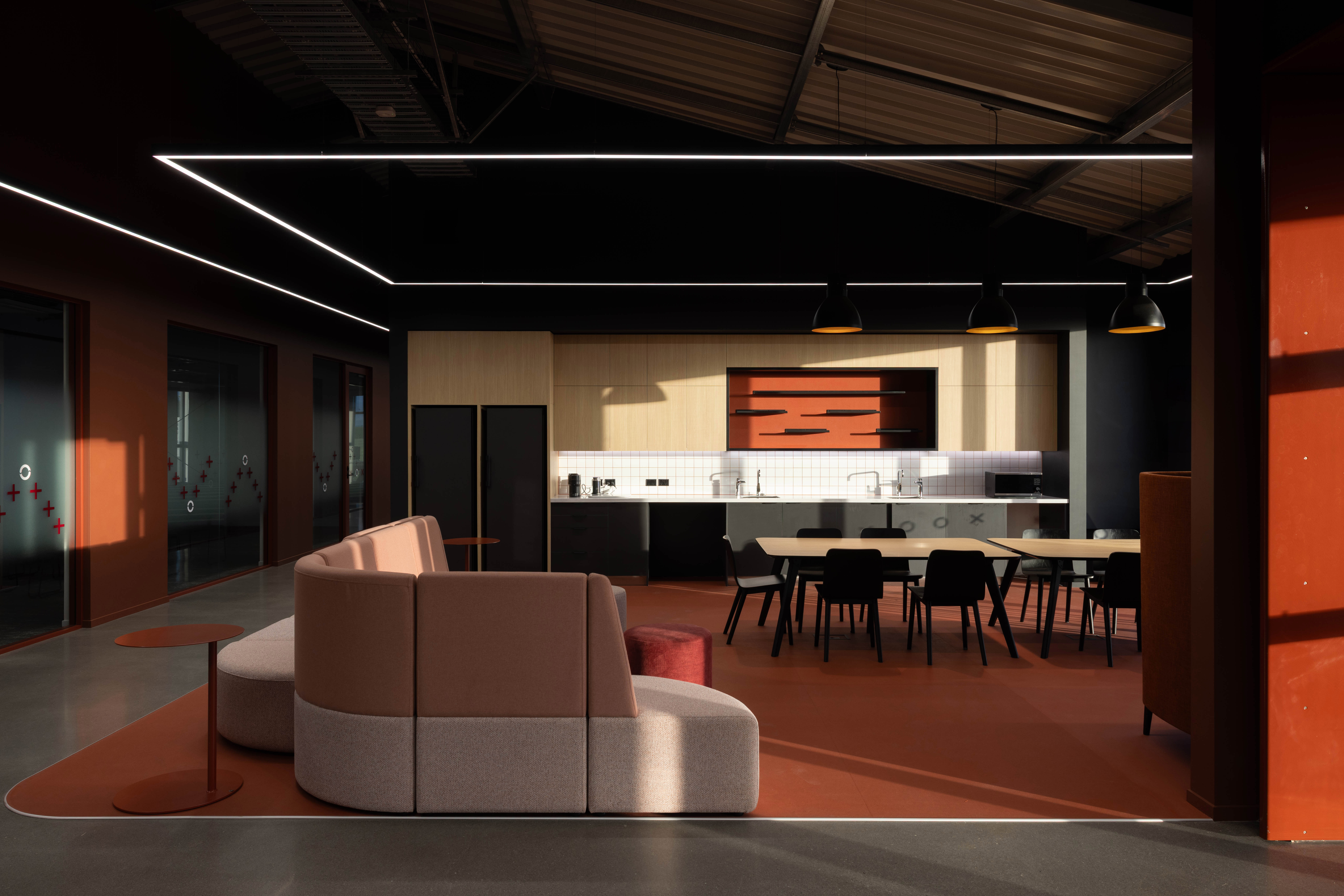 Functionality was key to the design. The ILO 50 is DALI-controlled and fitted with prismatic diffusers that distribute light evenly while significantly reducing glare. This combination ensures comfortable, high-quality illumination — essential in a space designed for both focused work and fluid collaboration.