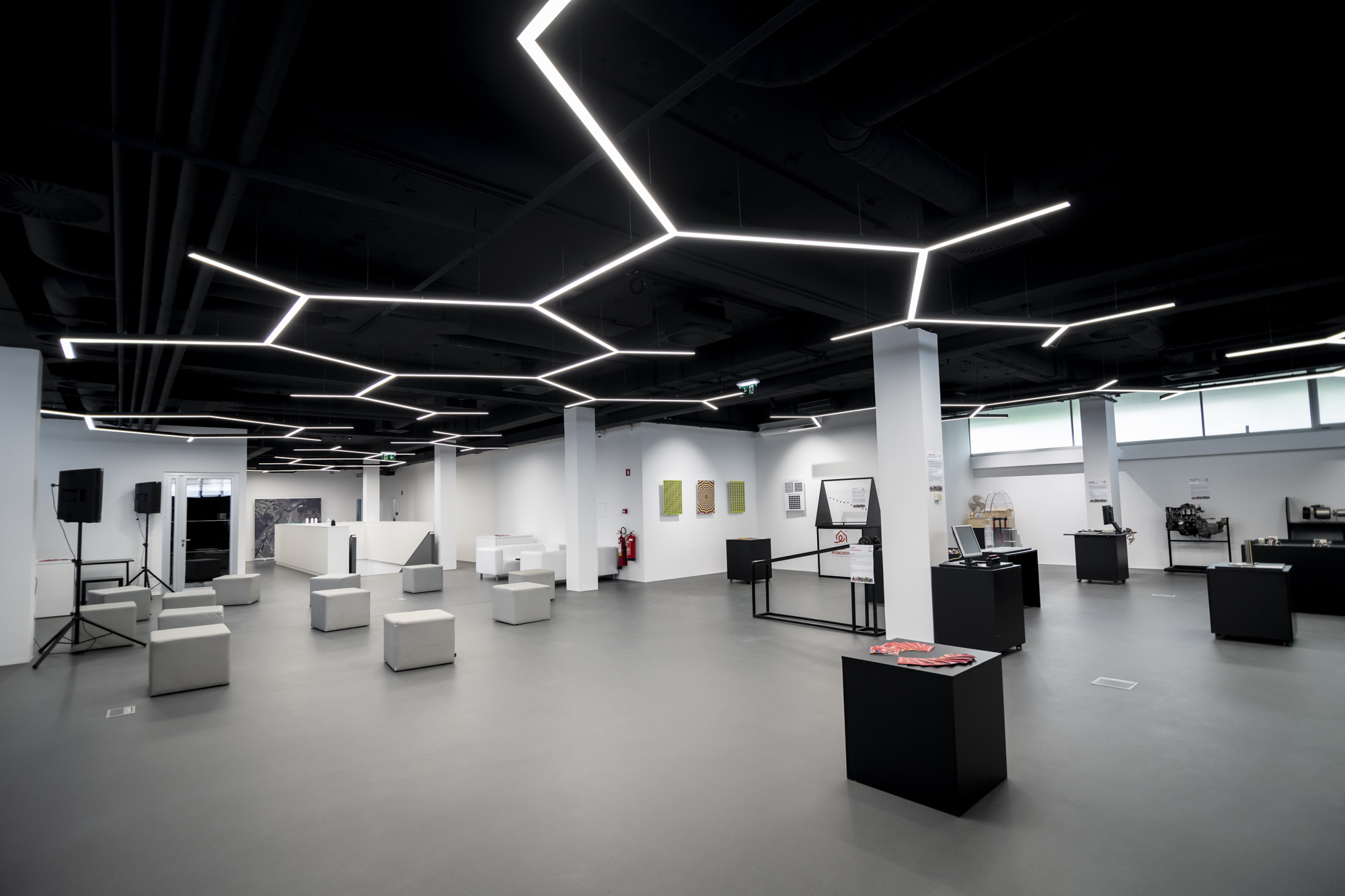 ILO lighting profiles, combined in a honeycomb structure, did their job with excellence, providing a playful environment and enhancing the atmosphere, besides doing their primary job of providing high-quality lighting.