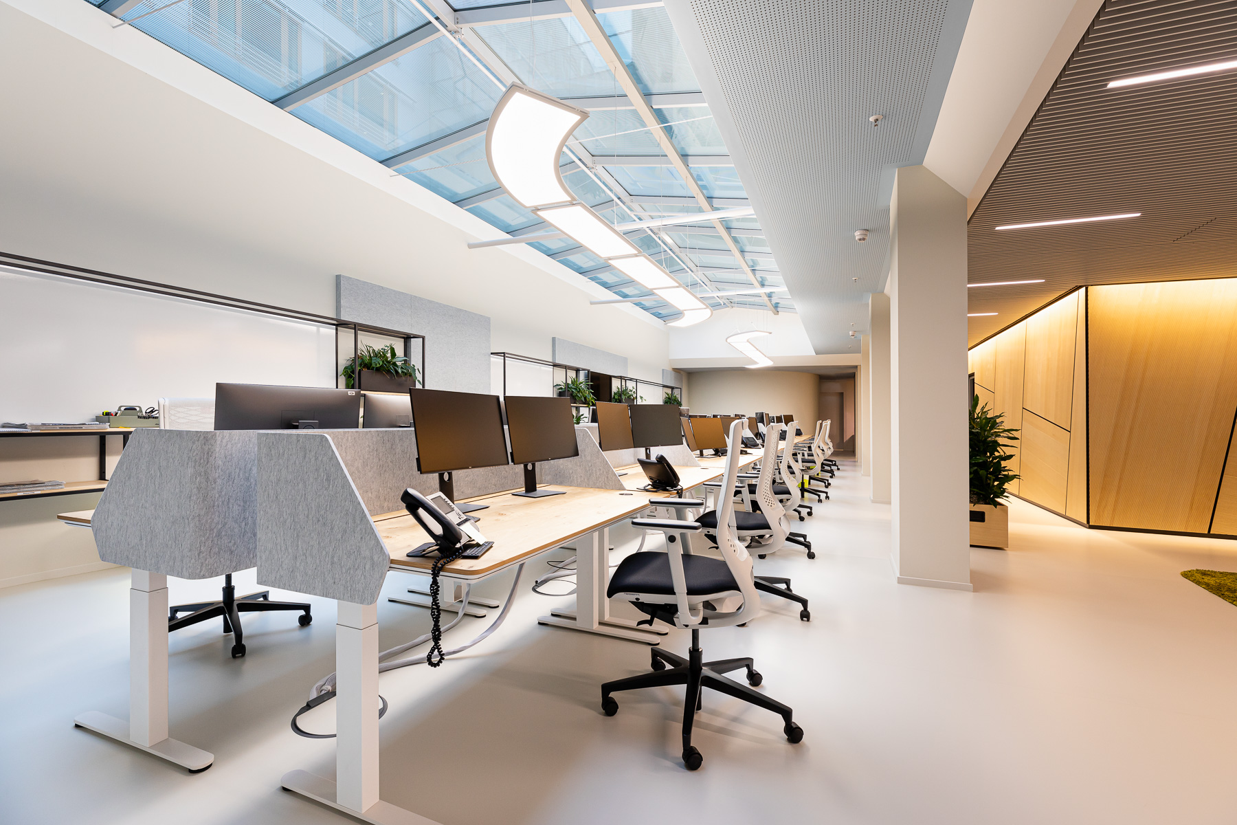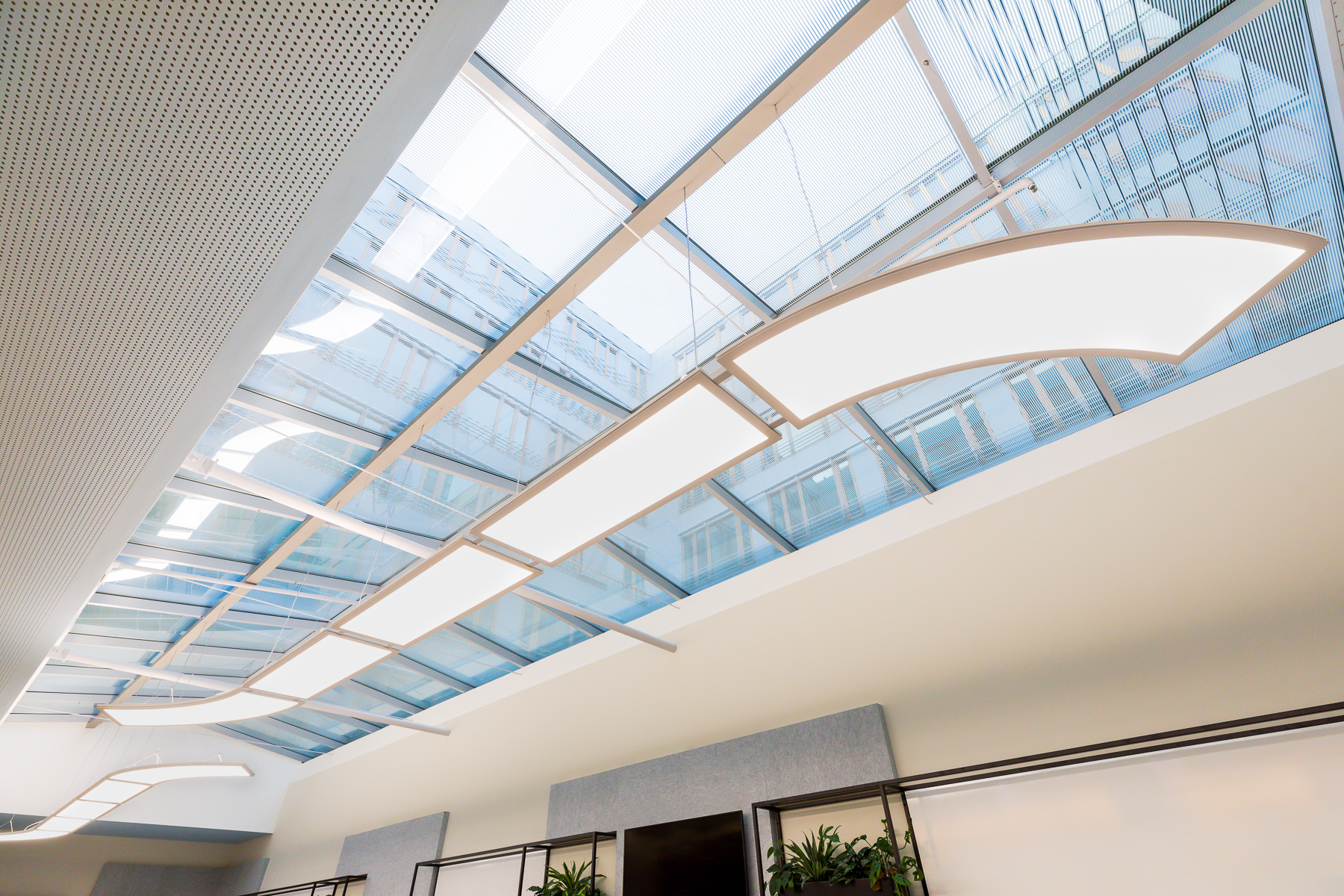 The essence of the EOS System lies in its flexibility. By utilizing fundamental components—a slim aluminum profile and a transparent panel that illuminates uniformly when activated—we empower you to create your own designs and optimize your environment to its fullest potential.